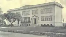 Enrollment in the school increased rapidly;[8] indeed, the town's population, which had about doubled between 1900 and 1910, doubled again by 1920.[11] An addition was built onto the east side of the school in 1917, that featured a larger facade which was oriented directly onto Broad Avenue.[9] Land immediately adjacent to the school was acquired for a football field in 1926 and dedicated in 1928.[9] Another addition, this time onto the west side of the school, was built in 1937, and included a lunchroom;[8] this new wing was a product of one or both of the New Deal agencies, the Public Works Administration and the Works Progress Administration.[19][22]