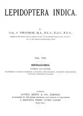 Lepidoptera Indica was a 10 volume work on the butterflies of the Indian region that was begun in 1890 and completed in 1913. It was published by Lovell Reeve and Co. of London. It has been considered the magnum opus of its author, Frederic Moore, assistant curator at the museum of the East India Company. Frederic Moore described a number of new species through this publication. Moore was a splitter, known for careless creation of synonyms, sometimes placing the same species in more than one genus.