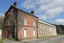 During the 19th century and the first half of the 20th century, the valley experienced a remarkable industrial boom. The four mills formerly belonging to the abbeys were bought by the Revolution and then transformed by bakers and manufacturers. As such, the fate of the mill Saint-Pierre near the Fortin fountain is evocative. Originally a wheat mill, it became a wire laundry in 1855,[11] and hydraulic energy is then used to power a mechanical weaver. In 1868, then in 1885, the factory was successively taken over by companies specializing in the production of fabrics, then waxed or varnished fabrics. The industrial site was booming, several buildings were built, and a steam engine was installed to replace the mill.[18] In 1888, the company was taken over by Chapman, which until the 1930s carried out modernization work to improve the manufacturing process of oilcloths. In 1949, the factory was taken over by the company Les Fils d'Émile Sénéchal. In 1979–1980, the factory stopped its activity.