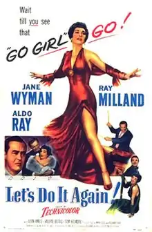 Let's Do It Again is a 1953 American Technicolor musical film set in 1950 New York, and released by Columbia Pictures. The film was directed by Alexander Hall and starred Jane Wyman, Ray Milland, Aldo Ray, and Tom Helmore. It is the story of a composer's wife (Wyman) who tries to make him (Milland) jealous, but the ploy backfires and leads to divorce.