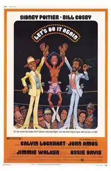 Let's Do It Again is a 1975 American action crime comedy film starring Sidney Poitier and co-starring Bill Cosby and Jimmie Walker[2] among an all-star black cast. The film, directed by Poitier,[2] is about blue-collar workers who decide to rig a boxing match to raise money for their fraternal lodge. The song of the same name by The Staple Singers was featured as the opening and ending theme of the film, and as a result, the two have become commonly associated with each other. The production companies include Verdon Productions and The First Artists Production Company, Ltd., and distributed by Warner Bros. The movie was filmed in two cities, Atlanta, Georgia and New Orleans, Louisiana, where most of the plot takes place.[3] This was the second film pairing of Poitier and Cosby following Uptown Saturday Night, and followed by A Piece of the Action (1977). Of the three, Let's Do It Again has been the most successful both critically and commercially. Calvin Lockhart and Lee Chamberlin also appeared in Uptown Saturday Night. According to the American Film Institute, Let's Do It Again is not a sequel to Uptown Saturday Night.[3]