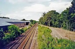 The station opened on 1 May 1883 by the North British, Arbroath and Montrose Railway.[1] The station was expanded with the doubling of the line in the 1890s.[2] The goods yard was situated to the west. The station closed to both passengers on 22 September 1930[3] and to goods traffic on 1 July 1959.[4]