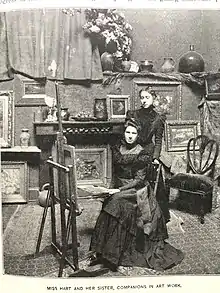 Starting around 1885, Letitia Hart exhibited her work at venues including the American Water Color Society, Art Club of Philadelphia, Brooklyn Art Association, James Gill's gallery in Springfield, Mass., Louisiana Purchase Exposition, National Academy of Design (she received the Norman W. Dodge $300 prize there in 1898 for best painting by a woman),[5] Pan-American Exposition, Union League Club of Brooklyn, and the Woman's Building at the 1893 World's Columbian Exposition in Chicago, Illinois.[4] With her sister (who often posed for portraits) and father, she commuted from Brooklyn to a top-floor studio at 11 East 14th Street in Manhattan.[5] She and her sister were praised for "the truthfulness and delicacy of their portraits."[6]