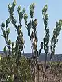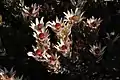 The shrub grows 3 m (9.8 ft) tall and flowers in August. The plant dies in a fire but the seeds survive. The seeds are stored in a toll on the female plant and fall to the ground after a fire and are spread by the wind, the seeds have wings. The plant is unisexual and there are separate plants with male and female flowers, which are pollinated by insects. The plant's national number is 81.2.[2]