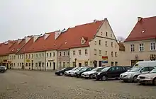 During World War II the Germans brought hundreds of forced labourers to the town, mostly Poles, but also Russians, Ukrainians, the French, Jews and Serbs, both civilians and prisoners of war.[4] In the final stages of World War II, in January 1945, the Germans evacuated most of the population, leaving only the elderly in the town, and recruited many inhabitants into the Volkssturm.[4] On 4 February 1945 the town was overtaken by the Red Army, which plundered it afterwards.[4]