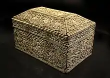 The Leyre Casket (Arqueta de Leyre, Museo de Navarra inventory number 1360-B, also known as the Leire Casket, Pamplona Casket) is one of the jewels of Hispano-Arab Islamic art. It is a casket or reliquary made of elephant ivory which was made in 1004/5 in the Caliphate of Cordoba.