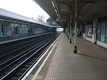 According to TfL, the station is severely overcrowded at peak periods, due to the small ticket hall (as a result of the station's location on top of the bridge over the tracks), and the proximity of the ticket barriers to the narrow pavement outside the station.[18] In 2011, it was announced the capacity of the station would be increased, in order to cope with the predicted additional users of the station during the 2012 Olympic Games, and to ease the existing congestion. This work would have created a new access to Goodall Road from the westbound platform.[19][20] This work never materialised.[21]