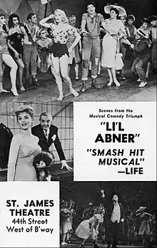 A musical version of the popular comic strip Li'l Abner was first planned in 1946, with the book to be written by the comic strip's author, Al Capp.[1] Richard Rodgers and Oscar Hammerstein II were named as potential producers, though reports did not state whether they intended to write the score.[1] However, this version never materialized, and over the next several years, various authors and composers sought to musicalize Li'l Abner, including writers Arnold Horwitt and Josh Logan.[2][3]