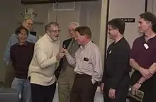 From left to right: Li-Chen Wang, Len Shustek, John Draper, Gordon French, Marty Spergel, Bob Lash, Ralph Campbell.