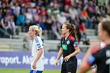 After 110 appearances with the German team, Wälti signed a contract with Arsenal in July 2018.[8] Wälti was instrumental in Arsenal's 2018–2019 WSL league winning season although only played half of the season after she suffered a LCL injury which kept her out of football for 9 months In April 2019.[9] She included in 2018-2019 PFA Team of the Year.[10] On 13 December 2019, Wälti signed a long-term contract with the club.[11]