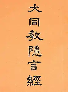In few years he will manage to translate 'Tablets of Bahá’u’lláh' (finished translation in 1938),[25] 'The Hidden Words' 大同教隱言經 (published in Canton in 1937),