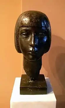 From July 1940 to 13 November 1941, Libertas wrote film reviews for the culture section of the National-Zeitung.[83] The task was difficult as she could not write freely or criticize, as the paper was under the control of Joseph Goebbels' propaganda ministry and the reviews had to include written text from the Zeitschriften-Dienst, that described what could and could not be written about.[83] Libs decided to cooperate in order to express herself and maintain influence.[84] For films she liked, she would often write extravagantly, or in the form of a love letter. In other films that didn't find favour, she would write in a strict and formal manner.[84] Originally a temporary position, it became permanent in the summer of 1941, but she became unsettled and decided to leave to try and achieve a film career.[85] Her last article Resurrection the mask in art dance introduced the dancer Oda Schottmüller, to the general public[86] and her successor as film critic was Adam Kuckhoff.[86] Both were her and Harro's friends and both resisted the Nazis.[86]