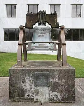 The Liberty Bell installed outside the Oregon State Capitol's west entrance, in Salem, Oregon, is a replica of the Liberty Bell in Philadelphia, Pennsylvania.[1] The bell was presented to Oregon on July 4, 1950, by John Snyder, an American businessman and federal government official who served as United States Secretary of the Treasury in President Harry S. Truman's administration, to promote savings bonds.[2]