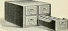 - ↑ James, M. S. (1902). "The Progress of the Modern Card Catalog Principle". Public Libraries. 7 (187): 185–189.