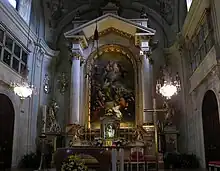 In 1723, Lichtental became an independent parish.[2] The first pastor was Carl de Giorgio. The building was completed in 1730 and consecrated to the Fourteen Holy Helpers.[1] An organ was installed in 1738. Facing a rapidly growing population, the church was expanded to its present size, from 1769 to 1773. The foundation was laid by Maria Theresia.[2] It shows elements of the transition from Baroque to Neoclassical architecture.[3]