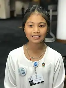 Licypriya Kangujam (Meitei language: ꯂꯤꯁꯤꯄ꯭ꯔꯤꯌꯥ ꯀꯥꯡꯉꯨꯖꯝ, IPA: [lisipɾija kaŋŋud͡ʒɐm]; born 2 October 2011) is a child environmental activist from India.[2] One of the youngest climate activists globally, she addressed world leaders at the 2019 United Nations Climate Change Conference in Madrid, Spain, asking them to take immediate climate action. Licypriya has been campaigning for climate action in India since 2018, to pass new laws to curb India's high pollution levels, and to make climate-change literacy mandatory in schools.[3][4][5][6][7] She has been regarded as India's Greta Thunberg, though she does not like the usage of this term.[8]