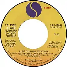 "Life During Wartime" is a song by the American new wave band Talking Heads, released as the first single from their 1979 album Fear of Music.[2] It peaked at #80 on the US Billboard Pop Singles Chart.
