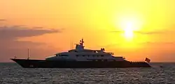 Limitless is one of the world's largest private superyachts. It was built in 1997 by German shipmaker Lürssen, with exterior design by the noted Jon Bannenberg and collaborator Jonathan Quinn Barnett,[1] and interior design by François Catroux.[2] The overall length is 96.25 m (315 ft. 8 in.), the width 12.50 m (41 ft.). It is powered by two engines of 5,420 kW (7,268 hp) each, reaching a speed of 25 knots (46 km/h; 29 mph), and was the first yacht to feature a combination of diesel and diesel-electric propulsion. Limitless is owned by Les Wexner, an American businessman who is currently chairman and former CEO of the L Brands corporation (formerly Limited Brands, and best known for its brand Victoria's Secret). The development of the Yacht was handled by Wexner's financial advisor Jeffrey Epstein.[3]