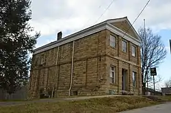 The Lincoln National Bank is a historic bank building located at 219 Main Street in Hamlin, West Virginia. The building was constructed circa 1907 during an oil and gas boom that bolstered Lincoln County's population and economy. The bank occupied the first floor of the building, while the second floor was used by the town's Masonic lodge. The two-story stone building has a temple front which features stone pilasters and a raking cornice, typical features of Classical Revival architecture. At the time, the Classical Revival style was widely used in banks to convey strength and dignity as banking recovered from the Panic of 1893 and a subsequent loss of consumer trust. The bank operated from the building until 1961, when they sold it to the Masonic lodge; the lodge leased the first floor to the town's police department until the 1980s and now occupies the entire building.[2]