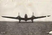 During the latter half of 1935, the Service Technique Aéronautique decided to enact several changes to some of the specified requirements; these included the revision of the rearward and lower turret arrangements and the crew reduced from five to four, as it was thought that the co-pilot could also serve as a navigator and bomb-aimer.[4] To reflect the crew change, the programme was re-designated from B5 to B4.[4] In September 1936, the envisioned bomber's requirements were revised to account for development of 1,000 hp (746 kW)-class engines; accordingly, the cruise speed raised to 470 km/h (255 knots, 290 mph).[5][4] It was at this point that Plan I was cancelled in favour of Plan II, which called for an even larger and more capable bomber force to be provisioned for the French Air Force; under this plan, it was envisioned that a total of 41 units each equipped with 12 B4-type aircraft would be established.[4]