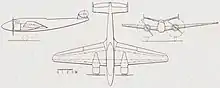 The LeO 45 featured an all-metal construction and a monocoque fuselage; the structure included 60 individual fixed frames attached to longitudinal stringers and was covered by flush-rivetted light alloy panels.[10] As a consequence of the specified speed requirements of the programme, a lot of effort was spent in reducing parasitic drag. The fuselage cross-section was reduced via the adoption of a main fuselage bomb bay paired to smaller bomb bays that were located within the wing roots.[15][16] The low cantilever wing, which employed a structure designed and patented by Mercier, was constructed in four separate sections.[15][10] Specifically, the inner section was built around two spars equipped with steel booms which had enough room between them to accommodate a 200 kg-class bomb and large self-sealing fuel tanks; the spars did not continue to the wing-tip but made way for a box-type structure. The wings were furnished with large split-type slotted flaps, which were electronically controlled and high aspect-ratio slotted ailerons, the latter of which being depressed during takeoff.[15][10]