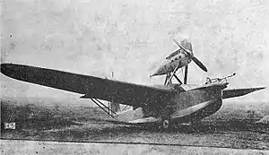 It was an amphibious aircraft; its landing gear had two retractable mainwheels and a small leaf spring tailskid. Two small, streamlined structures, each close to the fuselage side a little above the waterline and mounted on a pair of parallel struts from the forward wing spar, carried the undercarriage legs, a vertical shock absorber and a trailing arm meeting at the wheel axle, which could be rotated together to a horizontal position for touchdowns on water. The undercarriage track was 2.15 m (7 ft 1 in). Fitting the wheeled undercarriage increased the weight by 155 kg (342 lb) and reduced maximum speeds by about 5 km/h (3 mph; 3 kn).[1]