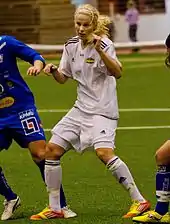 After one season in KIF Örebro's Damallsvenskan team, 18-year-old Dahlkvist signed for national champions Umeå IK in December 2005. She found the adjustment to a higher standard of football difficult and was close to quitting Umeå on several occasions during the first two seasons.[5] After settling into the team Dahlkvist developed into one of Sweden's best central midfielders, winning three Damallsvenskan titles with the club.[6]