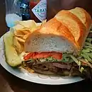 Nationwide; origins in Los Angeles | Thinly sliced roast beef on a French roll or baguette, usually served au jus |