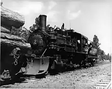 A Southwest Lumber Mills locomotive in 1959. A similar unit is on display in downtown Flagstaff.