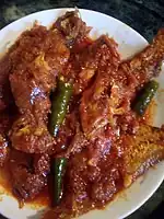 | Machher Jhol | ![]() | Curry prepared with fish and various spices |