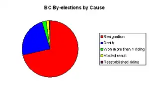 The August 16 by-election in the district of Lillooet is the last time a by-election had been held due to a voided result, as of March 2008.[5] The November 18, 1903 by-election in Vancouver City is the first by-election held[5] since political parties were introduced to the province.[14]