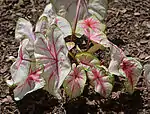 This page lists some of the many Caladium cultivars. There are over 1000 named cultivars of Caladium bicolor alone.[1]