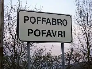 Bilingual road sign (Italian and Friulian) near San Vito al Torre