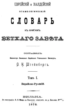 • Steinberg O.N. (Father to the soviet composer of classical music Maximilian Osseyevich Steinberg[8]): Jewish and Chaldean etymological dictionary to Old Testament books. T. 1-3. Vilna: Type. L. L. Matza, 1878–1881. (A Biblical hebrew dictionary in the Russian language) Штейнберг О. Н. Еврейский и халдейский этимологический словарь к книгам Ветхого Завета. Т. 1–3. Вильна: тип. Л. Л. Маца, 1878– 1881.