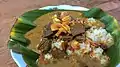 Kalio Minangkabau Curry dish, meat dish A type of rendang that is cooked for a shorter period of time and much of the coconut milk liquid has not evaporated.