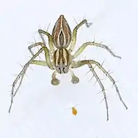 - ↑ "Family: Oxyopidae Thorell,1870". World Spider Catalog Version 20.0. Natural History Museum Bern. 2021. doi:10.24436/2. Retrieved 2021-02-23.
