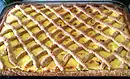 Szarlotka Apple cake called szarlotka or jabłecznik is made from sweet crust pastry and spiced apple filling. It can be topped with kruszonka (crumbles), meringue, or a dusting of caster (powdered) sugar. An additional layer of budyń (milk kissel) sometimes can be found. In restaurants and cafes, it is usually served hot with whipped cream and coffee.