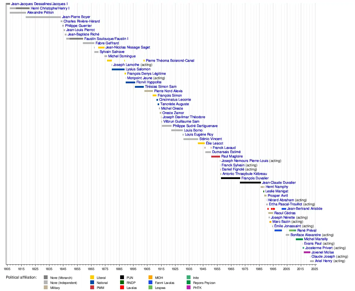 This article lists the heads of state of Haiti[1] since the beginning of the Haitian Revolution in 1791. Full independence of Haiti was declared in 1804.