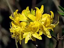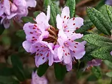 This List of Rhododendron species includes species of the genus Rhododendron, which is in the plant family Ericaceae. Depending on the source, there are anywhere from 800 to over 1,100 wild species.[1][2] The vast majority of Rhododendron species are native to the eastern Himalaya and southeast Tibet, along with the islands of Java, Sumatra, Borneo, New Guinea, and the Philippines. The rest are broadly spread throughout the northern hemisphere in relatively small isolated populations, including Japan, northwestern North America, the Appalachian, and the Caucasus Mountains.[3]