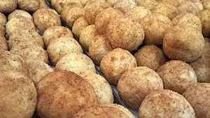 | Arancini or arancine | ![]() | stuffed rice balls which are coated with breadcrumbs and fried. They are said to have originated in Sicily in the 10th century during Kalbid rule. |