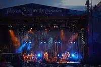 After completing the 'Dodgy Bastards' tour, Rick Kemp retired and has been replaced by Roger Carey, on bass.[22] For the November/December 2017 tour the band was joined by multi-instrumentalist and ex-Bellowhead member Benji Kirkpatrick.[23] Benji is son of former Steeleye Span member, John Kirkpatrick.[23] This seven-piece line-up was the first in the band's history. 2019 was the band's 50th anniversary year and a new album was released to celebrate the anniversary: Est'd 1969.[24] The band undertook two "50th Anniversary" tours in 2019, in Spring[25] and Winter.[26] The band played the 'Avalon Stage' at the Glastonbury Festival 2019,[27][28] were a closing act at the Cornbury Music Festival 2019[29] and even made their debut in Russia at a folk festival called Chasti Sveta (Части света, Parts of the World), in Saint Petersburg.[30][31] On 17 December they appeared at the Barbican Theatre, in London, with special guests and previous band members Peter Knight, Martin Carthy and John Kirkpatrick.[32]