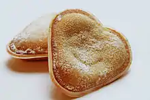 Vaniljhjärta Pastry made of shortcrust dough formed into hearts, filled with vanilla cream.