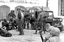 Willys M606 Ambulance: extended rear and raised top – U.S.M.C. photo.