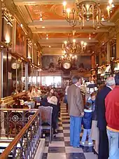This is a list of notable bakery cafés. Some retail bakeries are also coffeehouses, serving coffee and tea to customers who wish to consume the baked goods on the premises. A café, cafe, or "caff" may refer to a coffeehouse, bar, teahouse, diner, transport cafe, or other casual eating and drinking place, depending on the culture.[4][5][6][7][8]