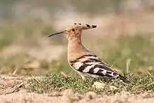Bustards are large terrestrial birds mainly associated with dry open country and steppes in the Old World. They are omnivorous and nest on the ground. They walk steadily on strong legs and big toes, pecking for food as they go. They have long broad wings with "fingered" wingtips and striking patterns in flight. Many have interesting mating displays.
