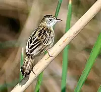 The estrildid finches are small passerine birds of the Old World tropics and Australasia. They are gregarious and often colonial seed eaters with short thick but pointed bills. They are all similar in structure and habits, but have a wide variation in plumage colour and pattern.