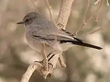 The hypocolius is a small Middle Eastern bird with the shape and soft plumage of a waxwing. They are mainly a uniform grey colour except the males have a black triangular mask around their eyes.