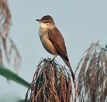 Clamorous reed warbler, breeds in reedbeds and mangroves.