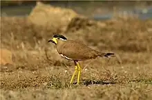 The jacanas are a group of tropical waders in the family Jacanidae. They are found throughout the tropics. They are identifiable by their huge feet and claws which enable them to walk on floating vegetation in the shallow lakes that are their preferred habitat.