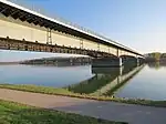 ![]() | 29 | Aschach Danube Bridge | Donaubrücke Aschach an der Donau | 132 m (433 ft) | 326 m (1,070 ft) | Beam bridge Composite steel/concrete 96+132+96 | 1962 | Aschach an der Donau–Feldkirchen an der Donau 48°21′45.4″N 14°01′32.0″E / 48.362611°N 14.025556°E | Upper Austria | [S 39] [46] | |
